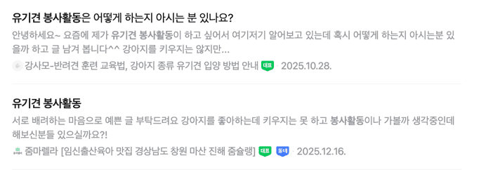 네이버 카페 유기견 봉사활동 검색 결과 1 네이버 카페 유기견 봉사활동 검색 결과 2