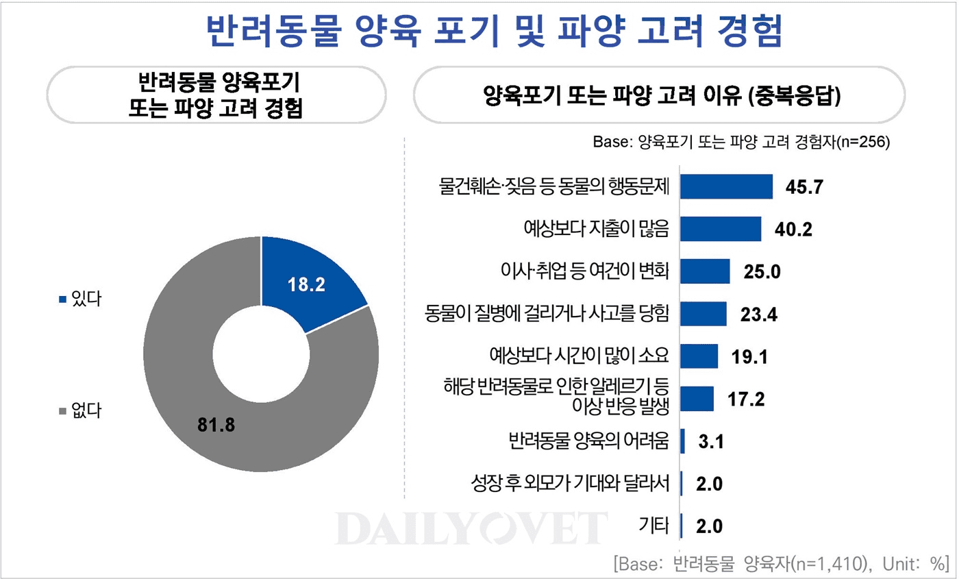 반려동물 양육 포기 및 파양 고려 경험 통계