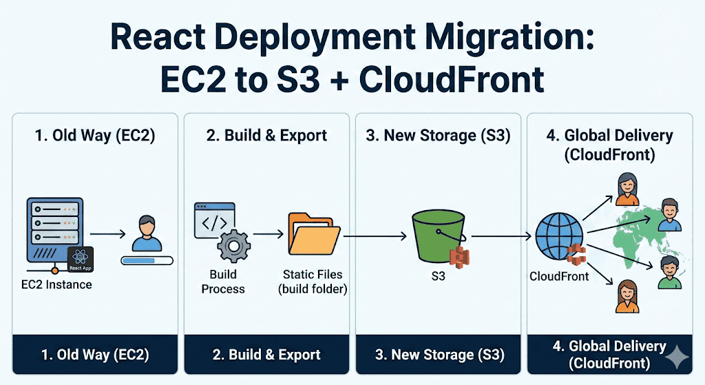이번 글에서는 React가 어떻게 빌드되고 배포되는지 살펴보고, 왜 EC2보다 S3와 CloudFront를 사용하는 것이 경제적인지 정리하려 합니다.