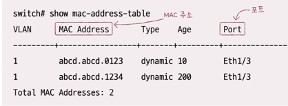 이러한 기능을 MAC 주소 학습이라고 합니다.