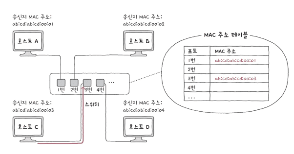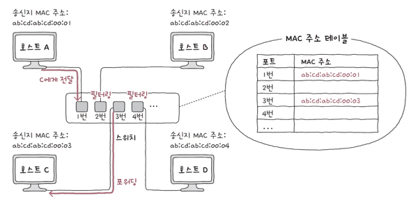 덕분에 원하는 호스트로만 프레임을 전달할 수 있습니다.