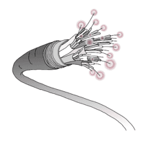 광섬유 케이블 본체 내부에는 아래 사진처럼 여러 개의 광섬유로 구성되어 있습니다.