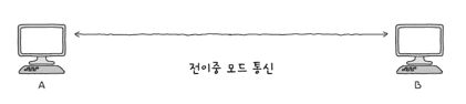 반대로 **전이중 모드(Full Duplex)**란, 송수신을 동시에 양방향으로 할 수 있는 통신 방식입니다.