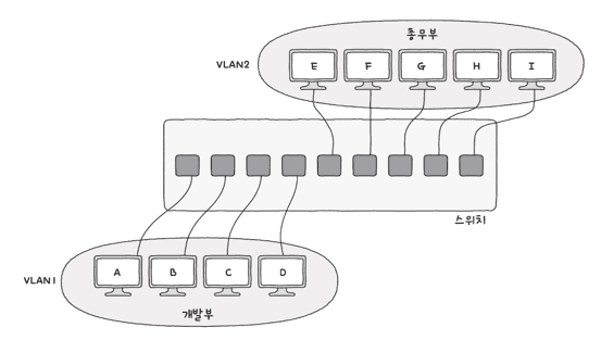 스위치의 또 다른 중요한 기능으로 VLAN (Virtual LAN)이 있습니다.