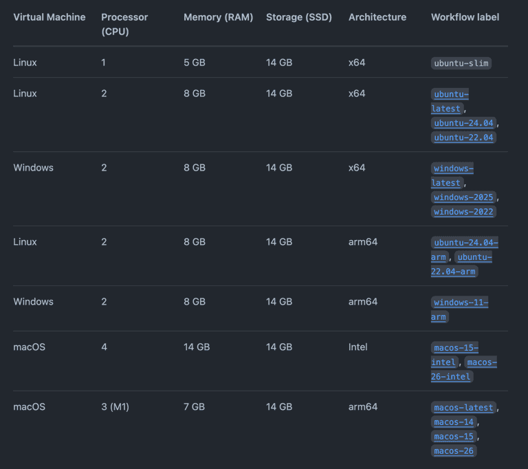 당시 GitHub Actions에서 동작하는 호스트의 하드웨어는 2 Processor, 8GB RAM, 14GB SSD, x64 Architecture 였습니다.